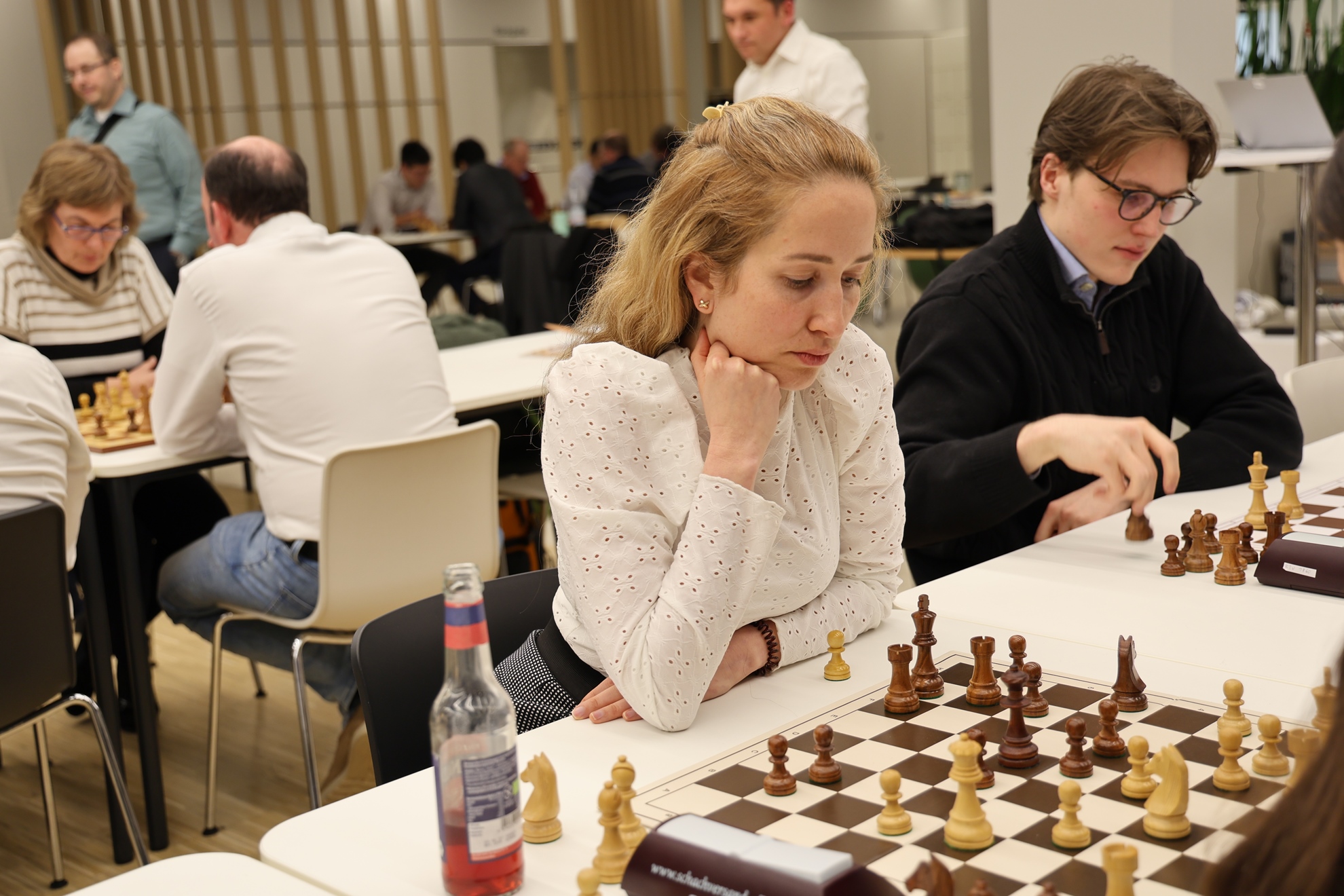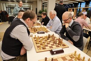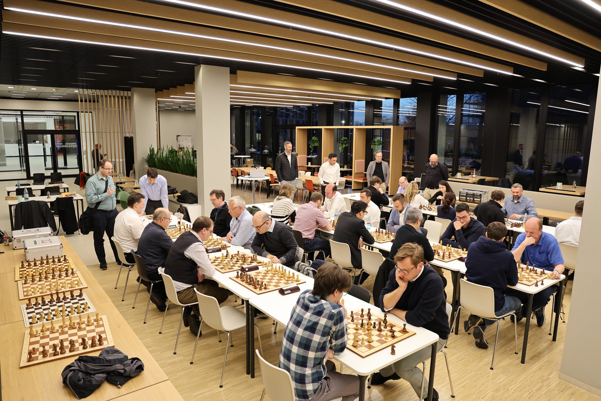 Gespielt wurde in vier 11er-Gruppen. Damit auch wirklich keine Minute Langeweile aufkommt, hatten die Spieler pro Partie exakt drei Minuten auf der Uhr – mit immerhin 2 Sekunden Bonus pro Zug. Wer beim Blitzschach also die Züge nicht im Schlaf kennt, durfte sich auf die ein oder andere Schweißperle einstellen.