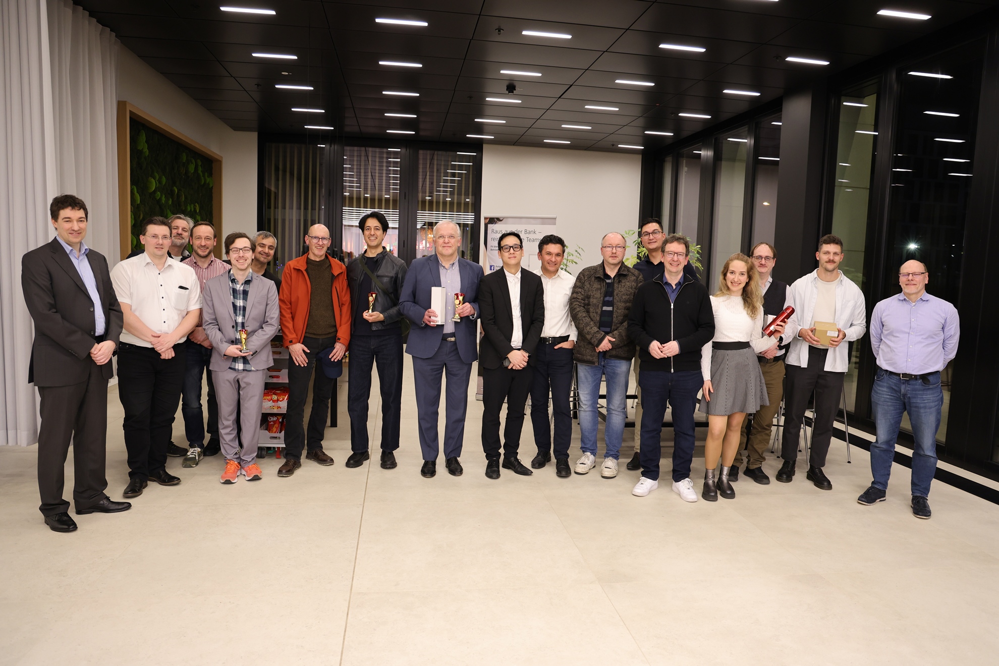 • C-Turnier: Besonders spannend, denn Christoph Xu (Deka) setzte sich knapp vor Khayot Khalimov (DZ Bank) durch – der direkte Vergleich gab bei gleicher Punktzahl den Ausschlag. Robert Nguyen (d-fine) vervollständigte mit nur einem halben Zähler Rückstand als Dritter das Podest.