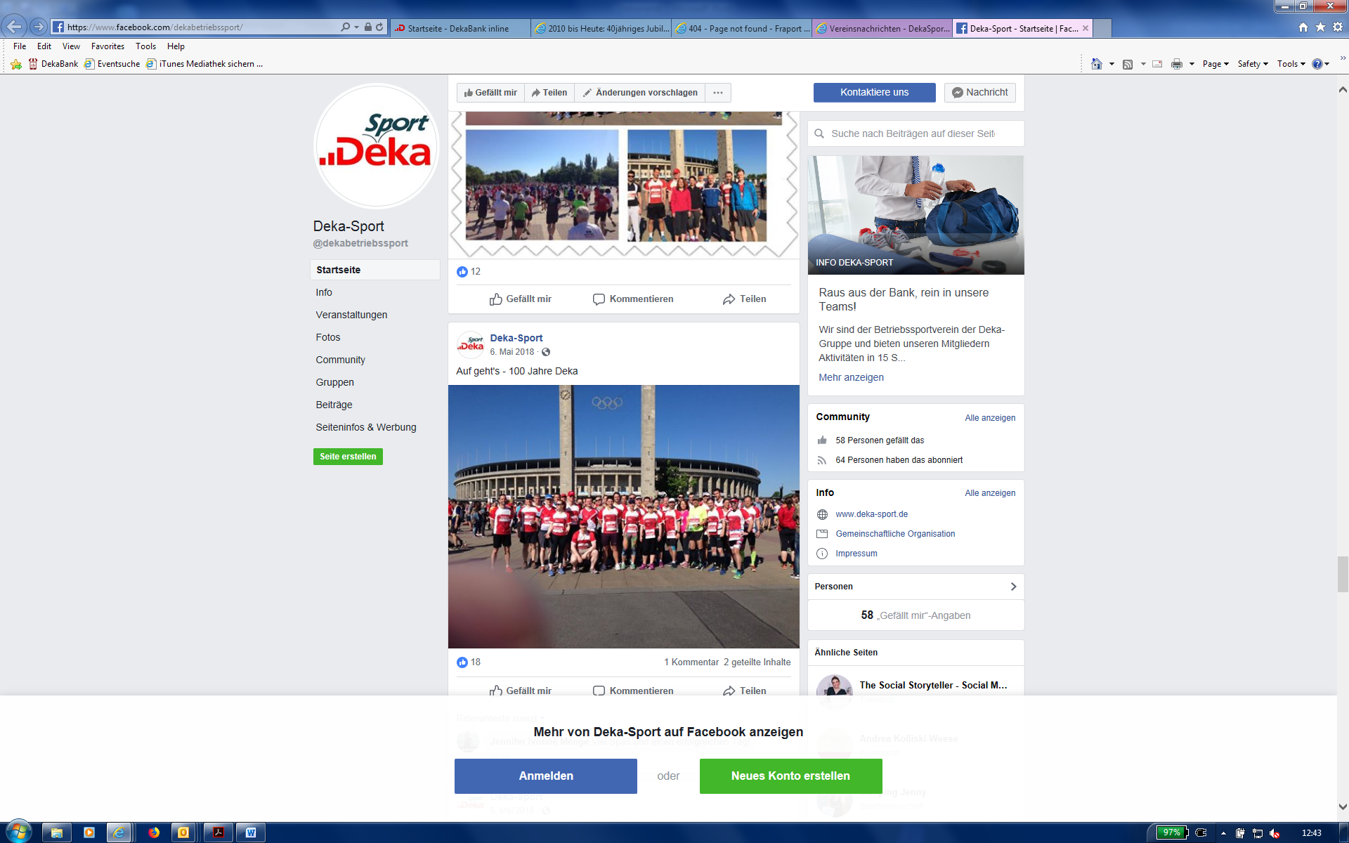 Anlässlich des Sparkassenmarathons in Berlin wurde der Facebook-Auftritt des Betriebssportvereins gestartet.
