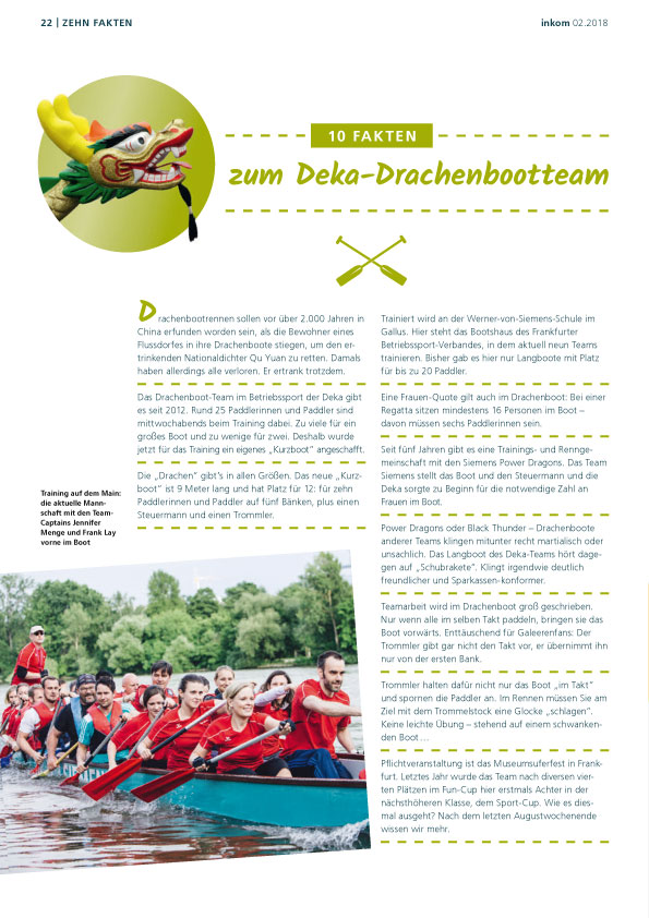 Im Juni 2018 wurde das erste Deka-eigene Drachenboot getauft und im Main stolz zu Wasser gelassen.