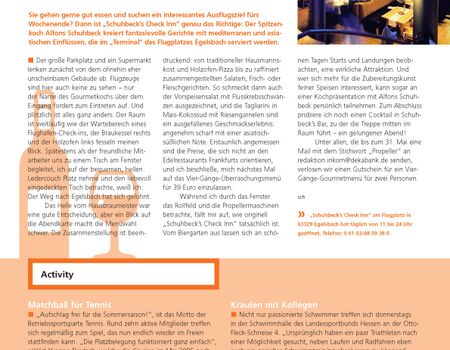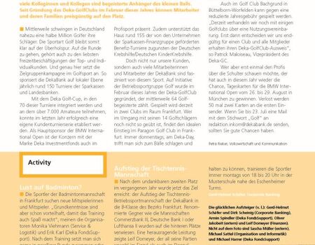 Der DekaBank Sport e.V. machte mit einem Flyer auf das breite Sportangebot aufmerksam.