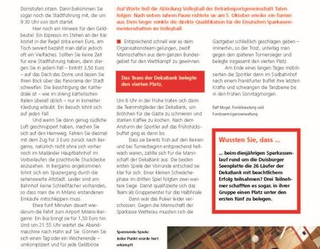 2002 veranstalteten die Volleyballer selbst ein Turnier und belegten einen tollen 4. Platz. Das Siegerteam qualifizierte sich für die deutschen Sparkassenmeisterschaften.