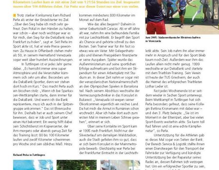 Das Jahr 2005 war ebenfalls ein erfolgreiches Sportjahr. Richard Pena gewann den Sparkassen-Triathlon in Tuttlingen. Der INKOM war dies ein ganzseitiger Bericht wert.