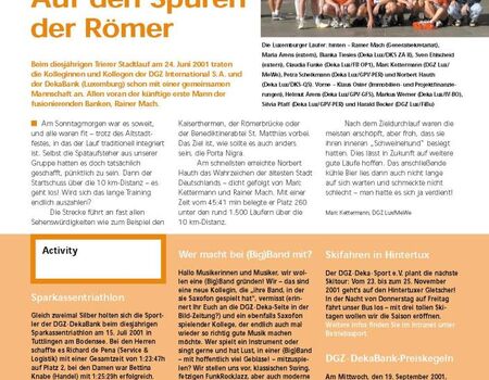 Wie in fast jedem Jahr war die DGZ – DekaBank auch 2003 wieder erfolgreich beim Sparkassenmarathon vertreten. Neuland konnten einige Luxemburger Kollegen beim Schnuppergolf betreten. Die Outdoor-Gruppe erkundete die Alpen.