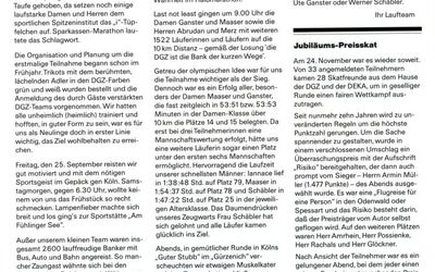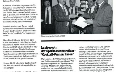 Berichtet wurde noch vom Preisskat und von der Teilnahme am Sparkassenmarathon in Essen. Die Informationen zu den Laufergebnissen waren dabei weniger wichtig als der Bericht zur Unterbringung, Verköstigung und Abendgestaltung.