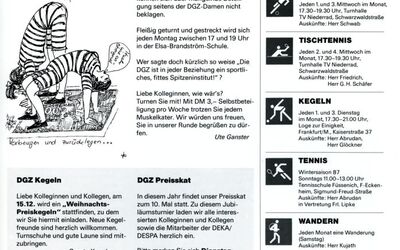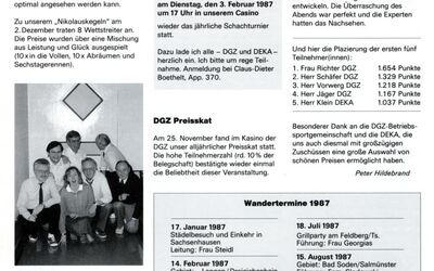 Das Jahr 1986 endete mit diversen Kegel- und Skatturnieren. Außerdem blickte die Wandergruppe auf das kommende Jahresporogramm.