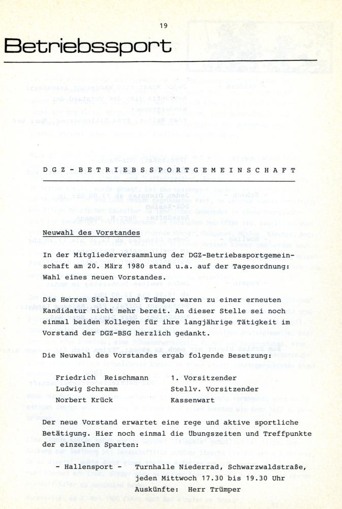 1980 wurde wieder gewählt. Die Herren Reischmann und Schramm führten die Geschicke des Betriebssports im neuen Jahrzehnt.