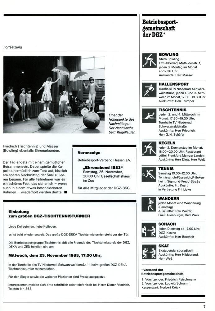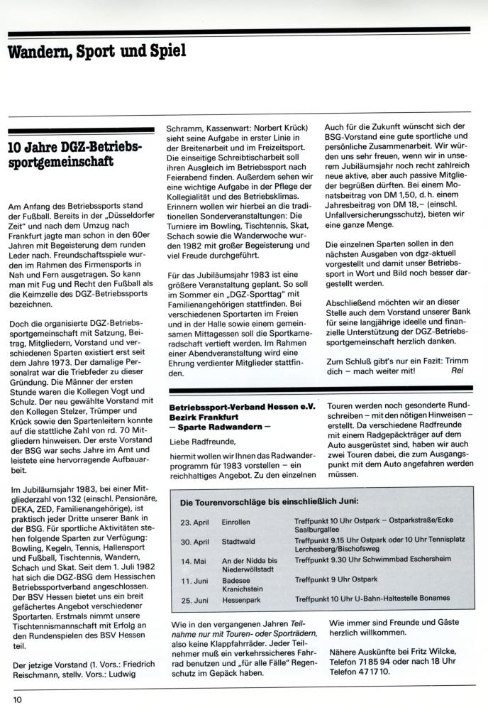 1983 feierte man das 10jährige Bestehen. Wie zu sehen ist, wurde das Sportangebot jetzt richtig professionell präsentiert. Zum lesen bitte anklicken.